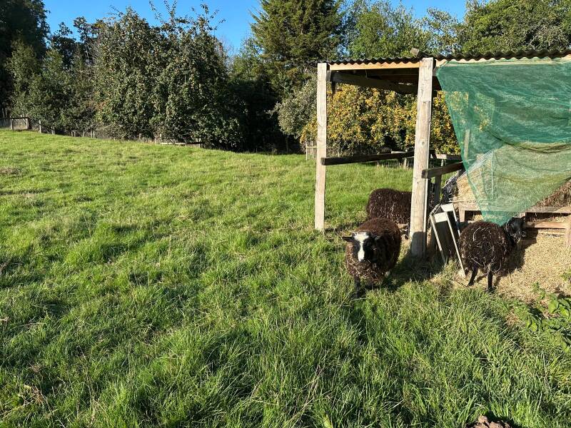 October is just about on us. So these Shetland ram lambs will be ready for processing next week. The weather is cold enough outside now. We carry out the entire process here. No stress for the animals with transport and abattoirs. Currently these rams are feeding themselves up on the apple windfalls in the orchard. Here they are under the 'Blenheim Orange' apple tree.